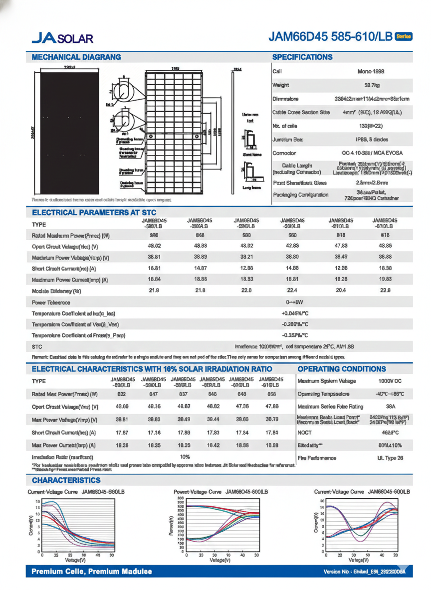 JA Solar 640W N-type không chỉ là một tấm pin, đó là một "cỗ máy" sản xuất điện năng mạnh mẽ hàng đầu hiện nay. Sự kết hợp giữa công nghệ N-type tiên tiến và thiết kế 2 mặt kính (Bifacial) giúp tối ưu hóa sản lượng điện từ cả ánh sáng trực tiếp mặt trước và ánh sáng phản xạ từ mặt sau.
